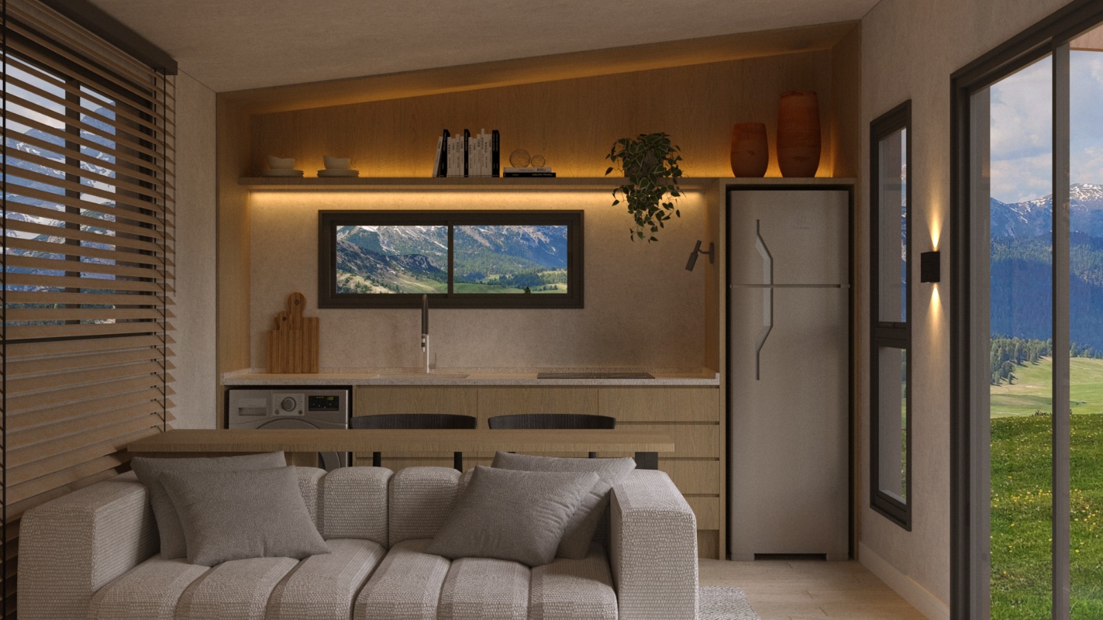 Um espaço compacto, moderno e completo. Quarto aconchegante, sala integrada, cozinha funcional e uma varanda perfeita para desacelerar. Design modular feito para quem busca conforto sem excessos.